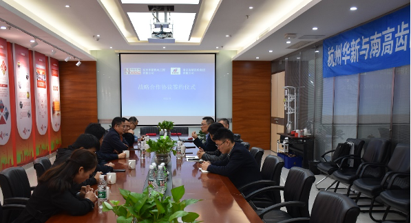 王吉如总经理代表华新机电对南高齿多年来的工作支持表示感谢,并简要介绍了华新机电近几年在产品转型升级、经营模式、生产制造、科技创新等领域的发展情况。因华新机电在港口机械制造特别是在卸船机产品上占有一定的市场份额,具有较好的品牌影响力、产品产销量大等特点,南高齿在齿轮行业也处于领先地位,期待此次华新机电与南高齿签订战略合作协议,未来更全面地深化合作,有效发挥双方的综合实力、竞争优势,不断拓宽合作领域,共同推进双方在起重领域的跨越式发展。