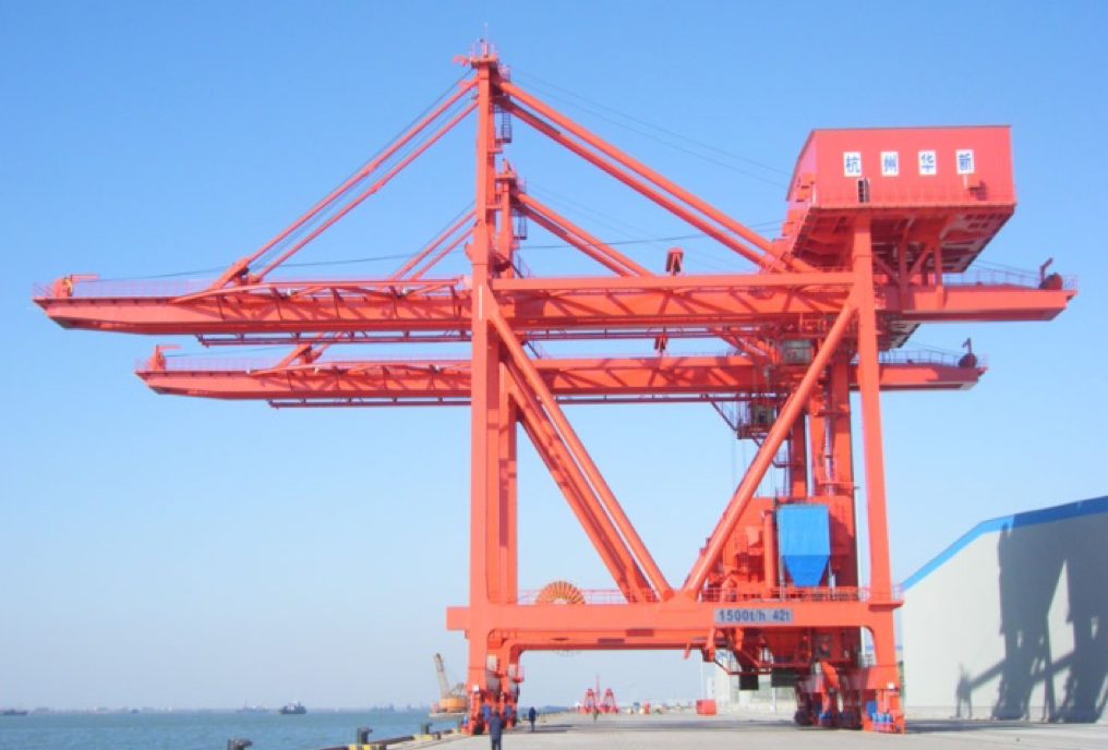 公司于1990年成功研发公司首台台四卷筒牵引式卸船机试验机,在上海吴泾热电厂投入使用,1993年1台600t/h机房下置的四卷筒牵引式卸船机在华能威海电厂投入使用,至今已运行近30年,设备情况良好。经过不断地发展,不断地积累经验,不断地研发创新,华新机电生产制造的卸船机技术在不断地升级,产品系列从200t/h~2400 t/h,目前生产制造过的生产率最大卸船机为马来西来亚TJB2400t/h项目,具备设计制造2500~3500t/h卸船机的能力。产品广泛应用于电力、冶金、建材、港口、散货码头等行业,在“一带一路”的伟大创举下,产品陆续出口印尼、马来、菲律宾、新加坡、越南等东南亚国家以及西亚、中东、南美、非洲等地区,产品遍及国内外。