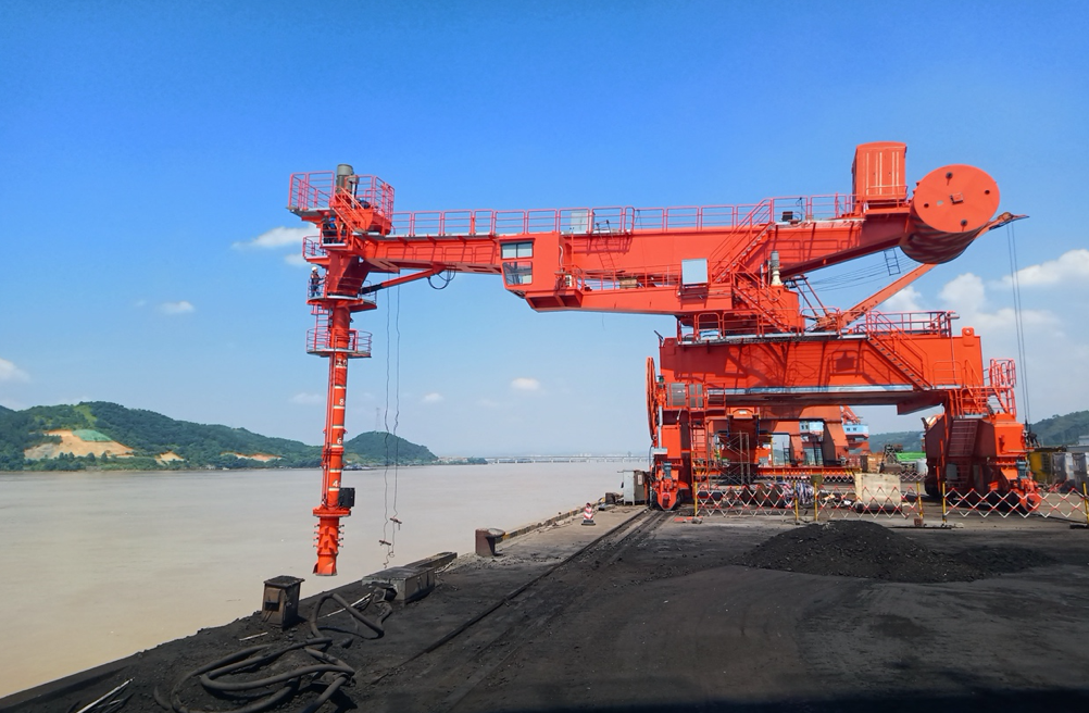 公司于1990年成功研发公司首台台四卷筒牵引式卸船机试验机,在上海吴泾热电厂投入使用,1993年1台600t/h机房下置的四卷筒牵引式卸船机在华能威海电厂投入使用,至今已运行近30年,设备情况良好。经过不断地发展,不断地积累经验,不断地研发创新,华新机电生产制造的卸船机技术在不断地升级,产品系列从200t/h~2400 t/h,目前生产制造过的生产率最大卸船机为马来西来亚TJB2400t/h项目,具备设计制造2500~3500t/h卸船机的能力。产品广泛应用于电力、冶金、建材、港口、散货码头等行业,在“一带一路”的伟大创举下,产品陆续出口印尼、马来、菲律宾、新加坡、越南等东南亚国家以及西亚、中东、南美、非洲等地区,产品遍及国内外。